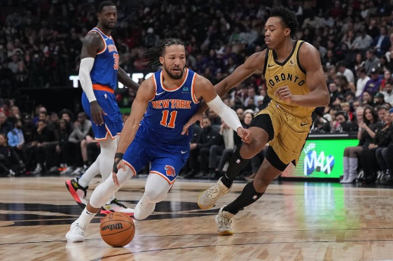 尼克斯队首发:杰伦-布伦森、朱利叶斯-兰德尔、RJ-巴雷特、米切尔-罗宾逊、昆汀-格兰姆斯