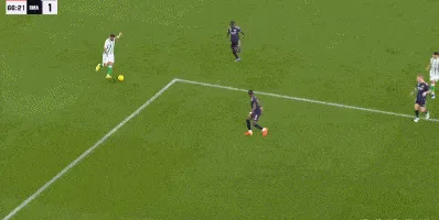 第90+7分钟,贝蒂斯前场任意球机会,伊斯科将球开向禁区,里亚德头球攻门被卢宁托出横梁。